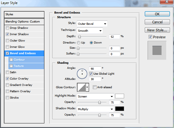 For both shapes I will add the following layer styles.